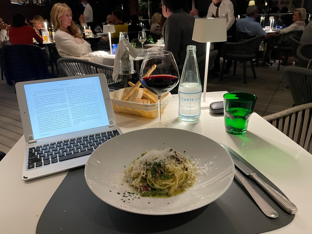 And so on to dinner – walked around and found Ristorante Al Bacio in the Castello Hotel. Nice menu and a beautiful view of the lake…