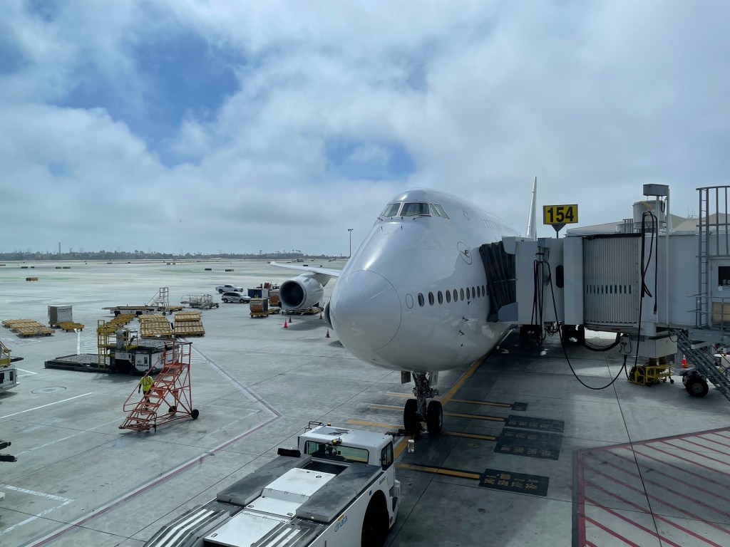 It’s time! … off on a beautiful 747-800, probably 25 years old and solid as a rock.