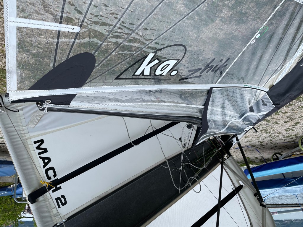 Anyway it was great fun and he was the perfect person to watch rig. In particular his spiffy technique for snapping the batten cams onto the mast was worth the price of admission*.