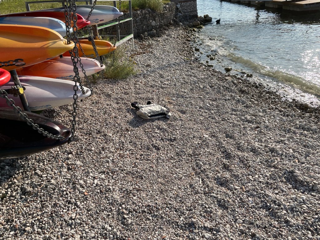 Back to the superdumb move. So I spend the whole day sailing, working on the boat, sailing some more, swimming next to the boat, sailing. I am exhausted. I finally get in after the last race, carry the boat out of the water up onto the beach, and what do I see? My life jacket, lying on the beach.
